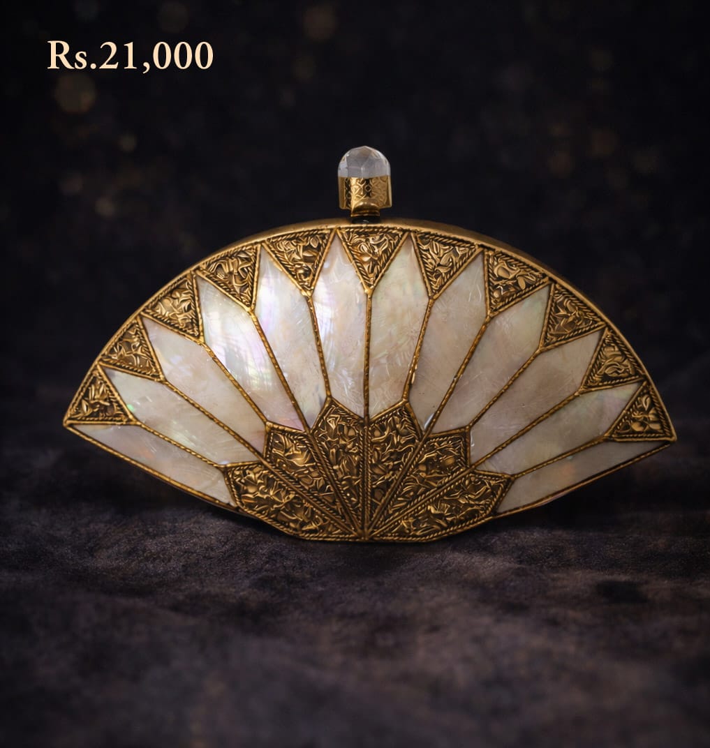 Ivory Gold Fan Clutch