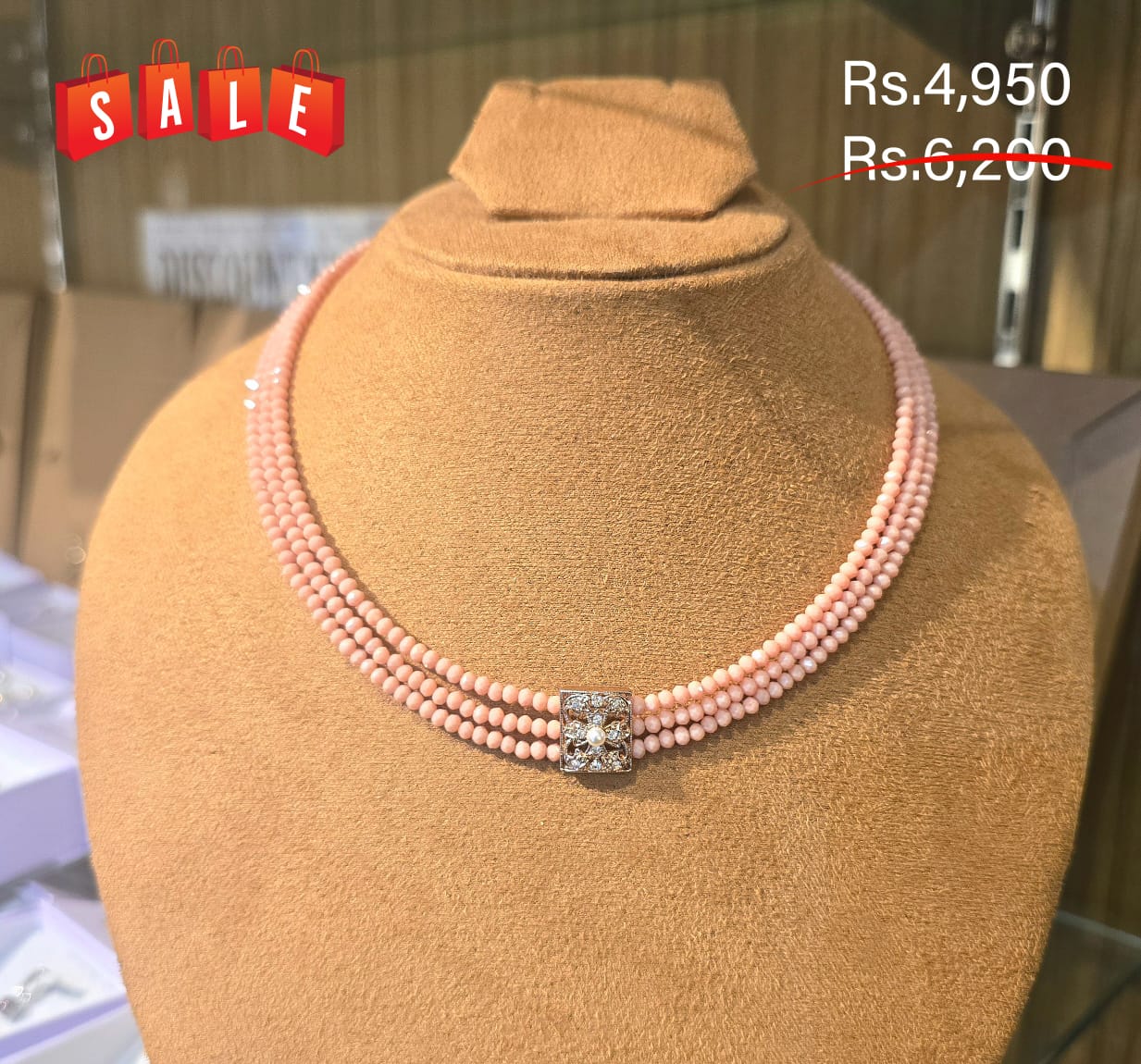 Fancy Crystal Three Line Necklace